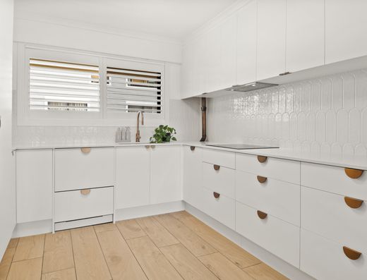 Freshly painted Renovated kitchen with new appliances (including dishwasher), glass splashback, breakfast bar, spacious pantry, double sink with flick mixer & ample cupboard space.