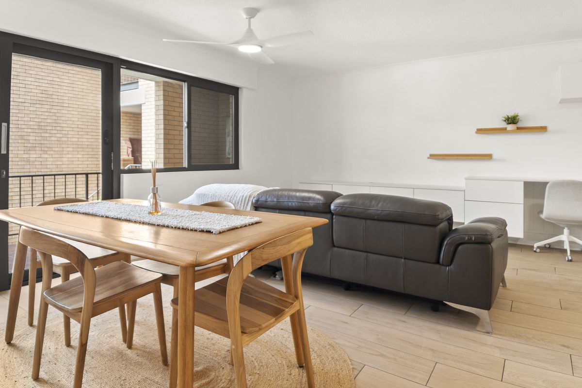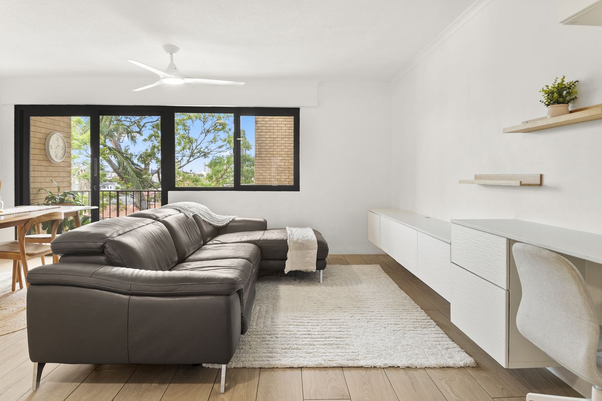 The open-plan living and dining zone is bathed in natural light and flows seamlessly to a private balcony with leafy outlooks and ocean glimpses, creating an inviting space for both quiet mornings and refined entertaining.