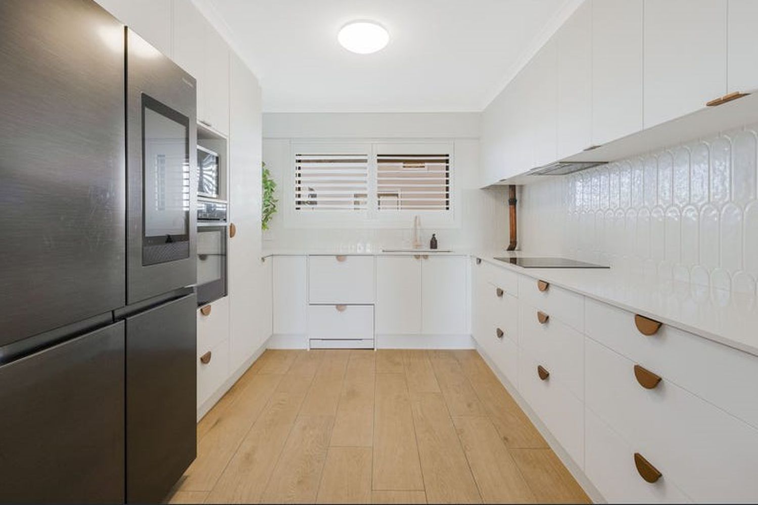From the moment you enter, the quality is unmistakable. A bespoke designer renovation showcases a sophisticated industrial-inspired aesthetic, softened by warm textures and timeless materials. The gourmet kitchen is nothing short of impressive, featuring top-of-the-line NEFF appliances, including a statement $10,000 oven, integrated double dishwasher, plumbed refrigerator space, stone benchtops, soft-close cabinetry, and intelligent storage solutions. Feature copper tapware introduces a subtle yet striking layer of luxury throughout the kitchen and bathrooms.