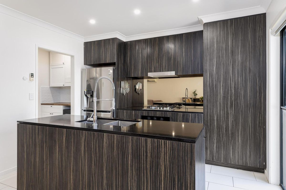 Gourmet kitchen with stone benchtops, gas cooktop, stainless-steel appliances, and ample storage