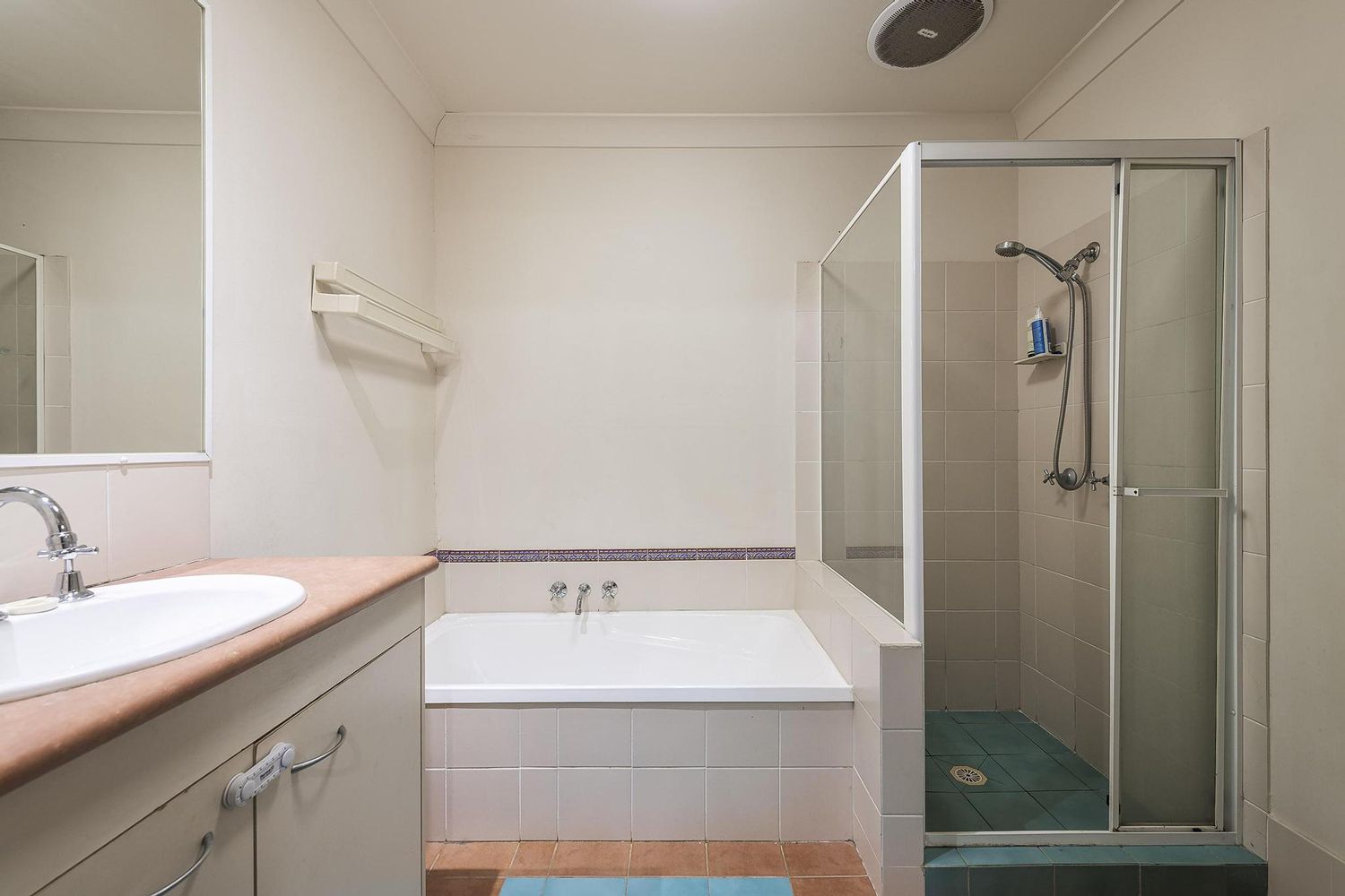 - Main bathroom featuring a separate bath and shower.