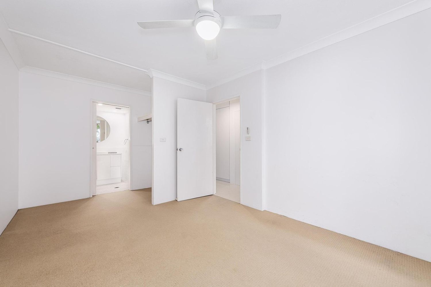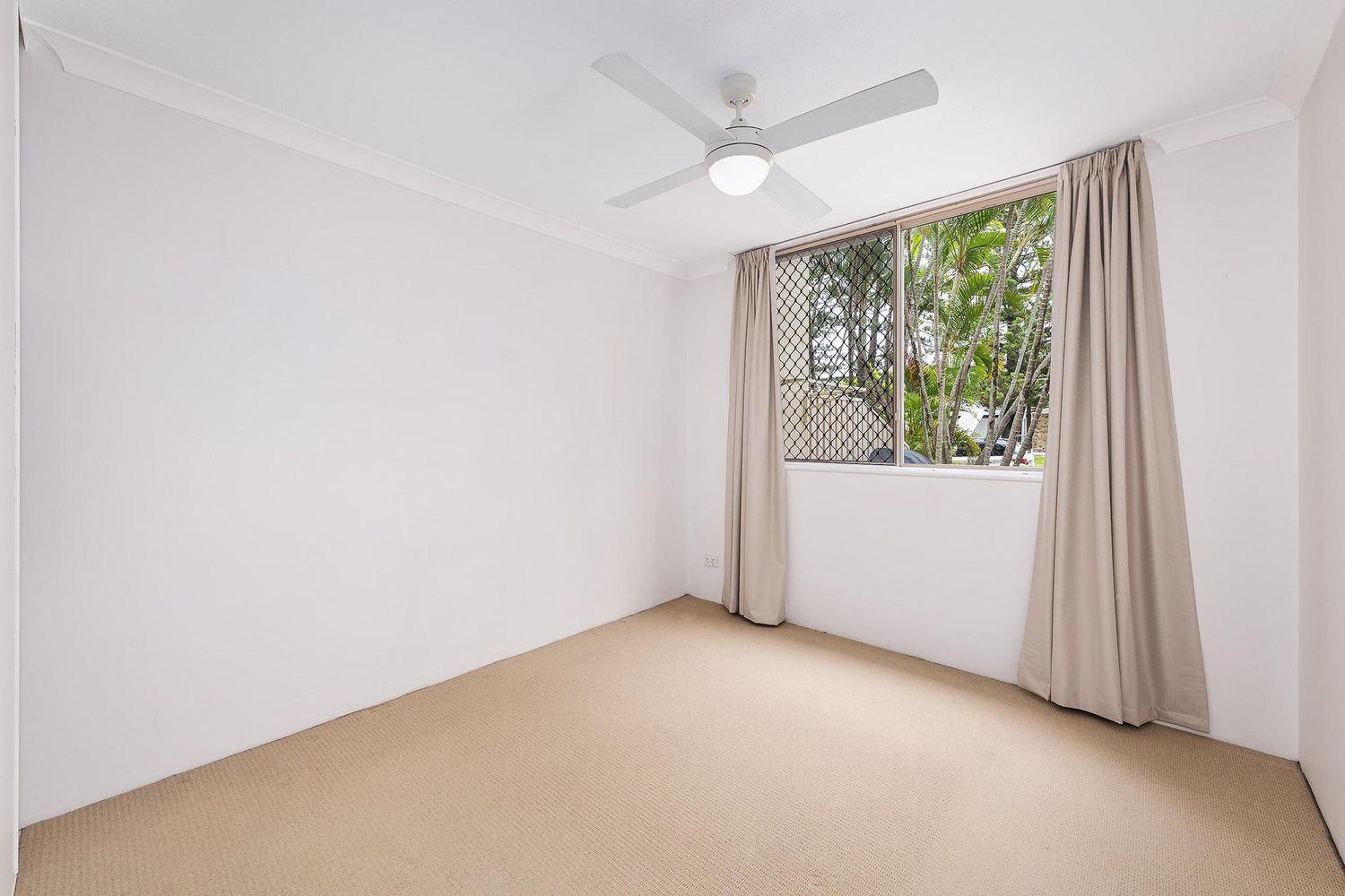 The master suite has a private bathroom, ceiling fan and direct access to the patio, while the second bedroom is generously sized with a built-in wardrobe and ceiling fan. Both bathrooms feature contemporary fixtures, with the main bathroom sharing the laundry.