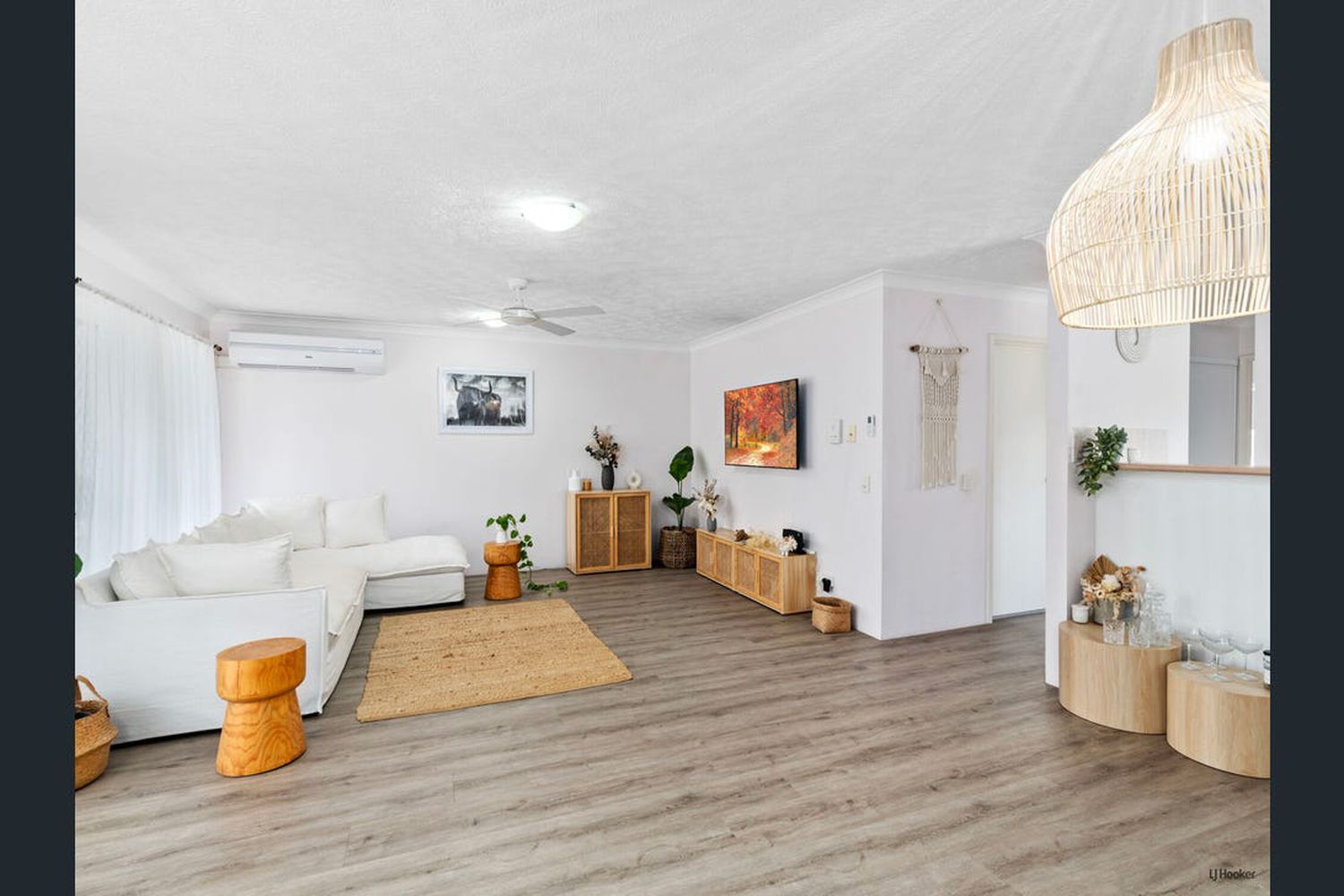Laminate engineered vinyl plank floors adding warmth and coastal charm