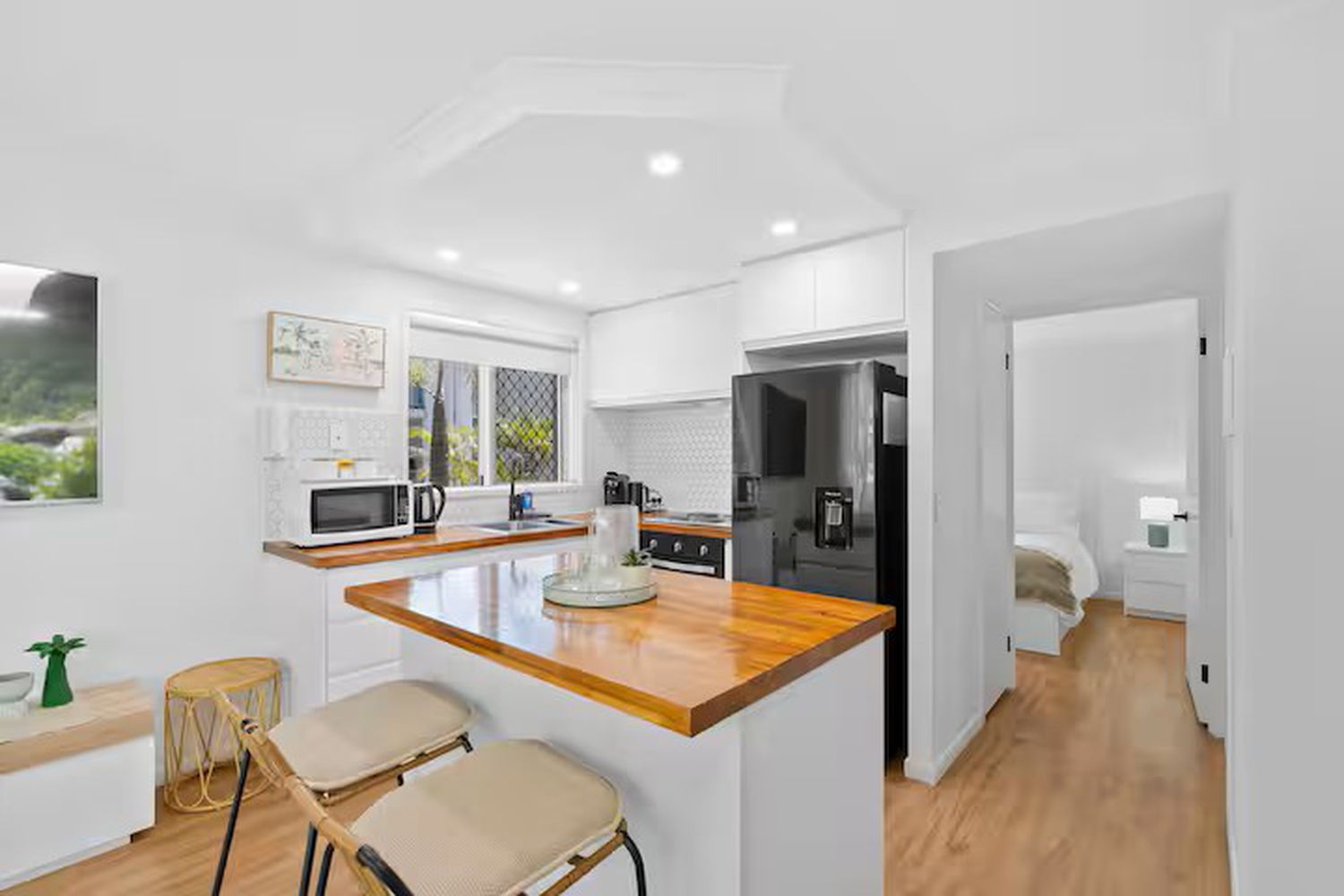 - Queen bedroom with light-filled living space