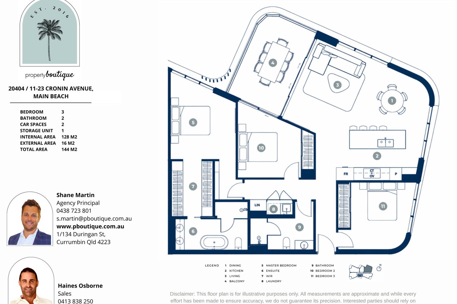 Internal area: 128m² | External: 16m² | Total: 144m²