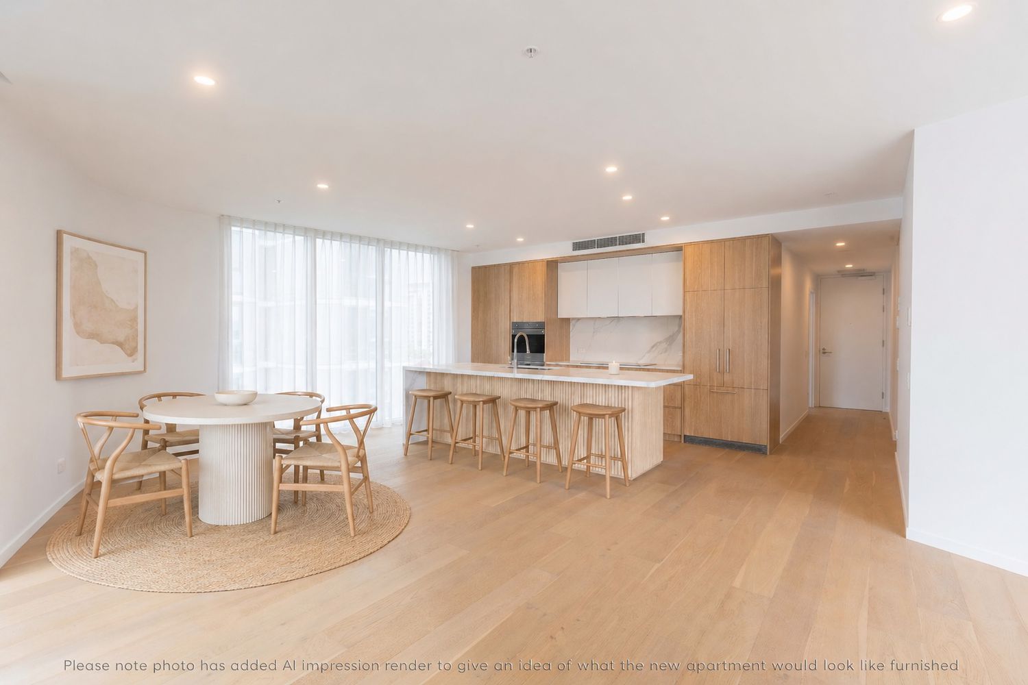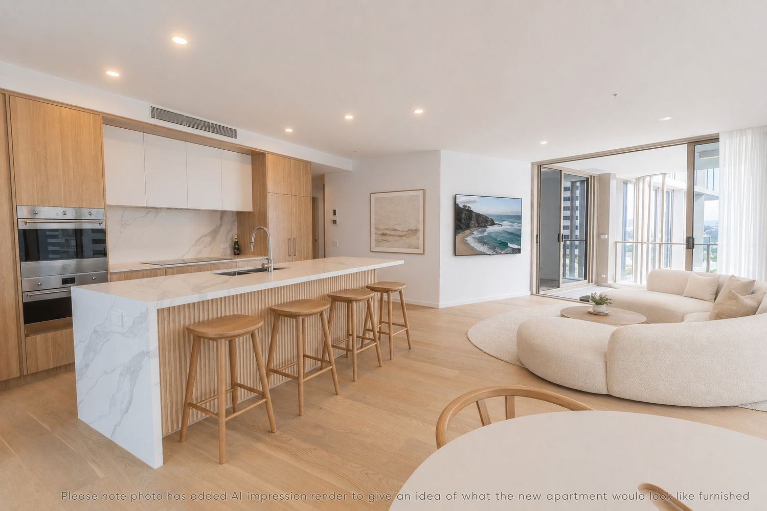 Light-filled open-plan living, dining & kitchen flowing seamlessly to private balcony