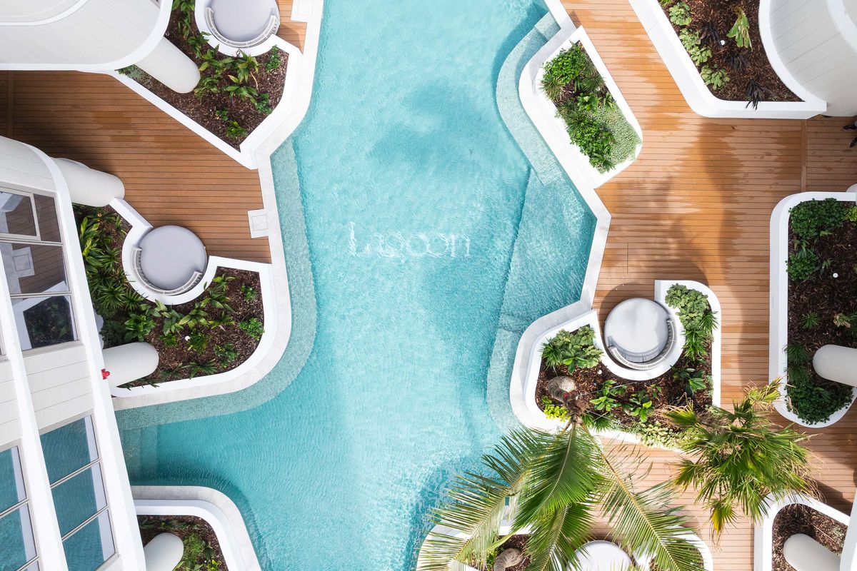 Resort-style pool with private alcoves