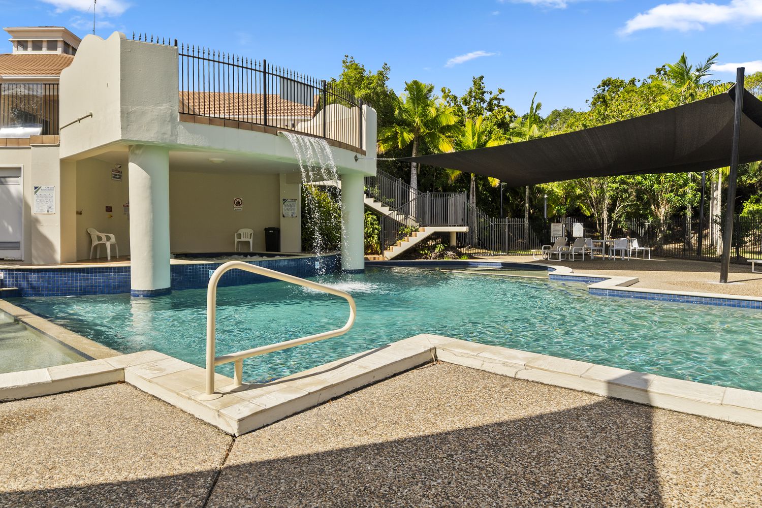 Residents enjoy access to premium, resort-style facilities including a lagoon pool with waterfall, fully equipped gym, sauna, clubhouse with kitchen and games/recreation room, secure gated entry, and professional on-site management.