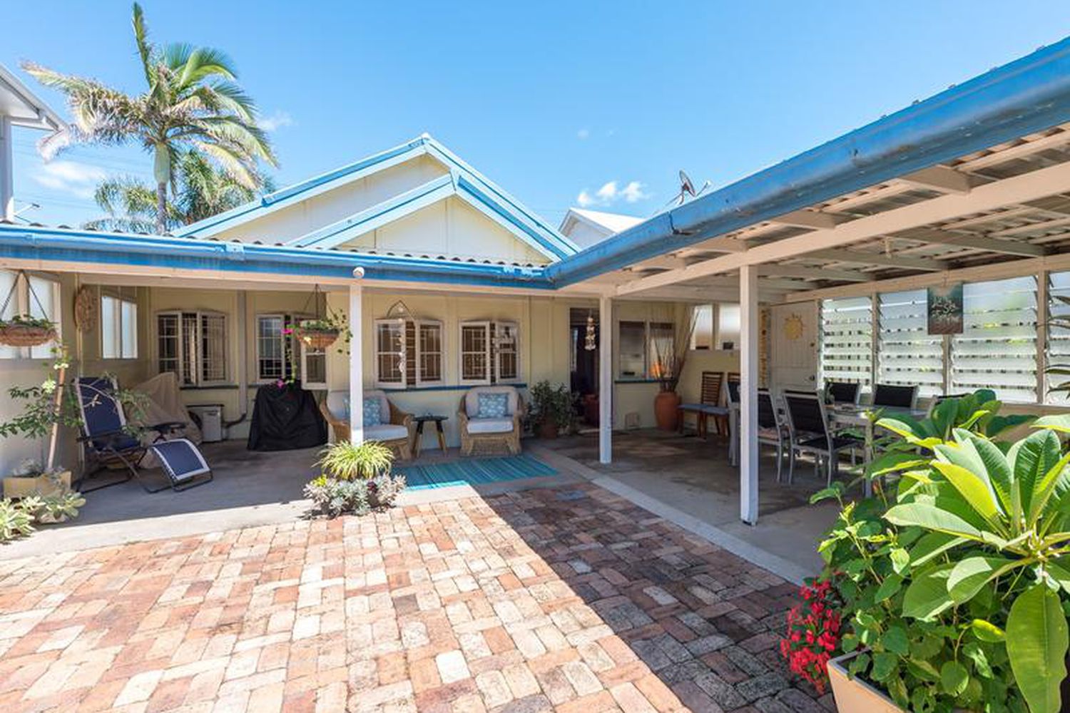 Fantastic indoor outdoor flow is enhanced by an interconnecting breezeway complete with a wall of louvred glass windows.