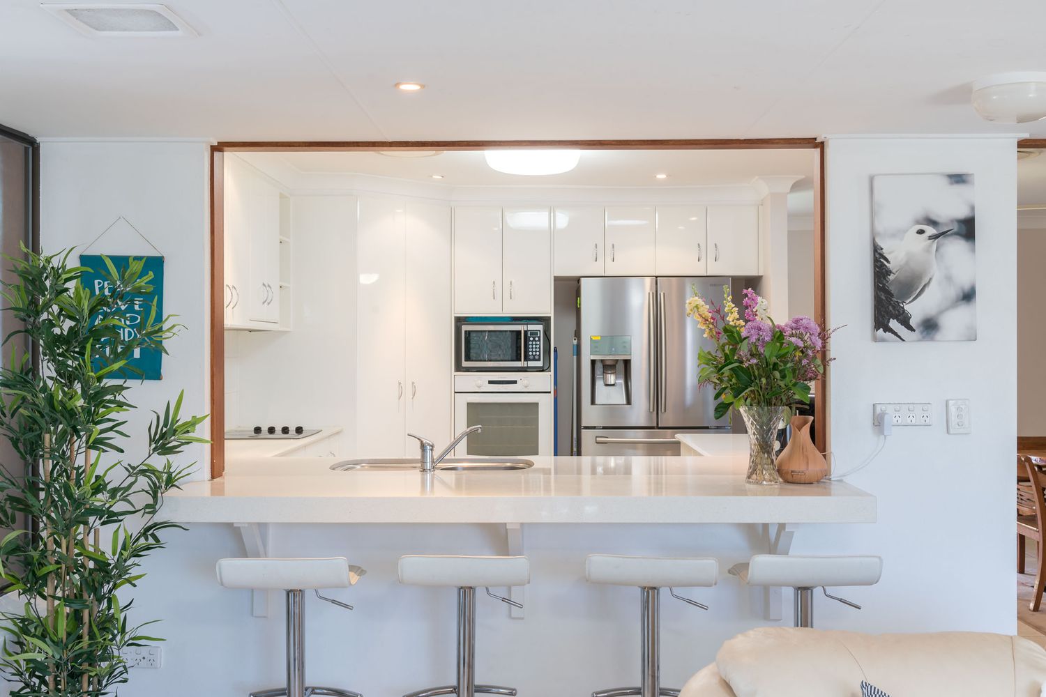 Modern kitchen with stone bench tops