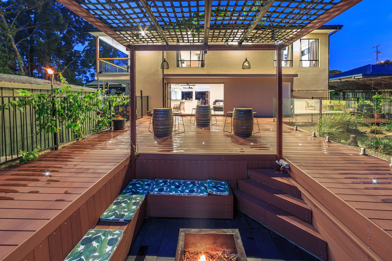- Multiple outdoor entertaining areas featuring an in-ground gazebo with built-in bench seats and fire pit