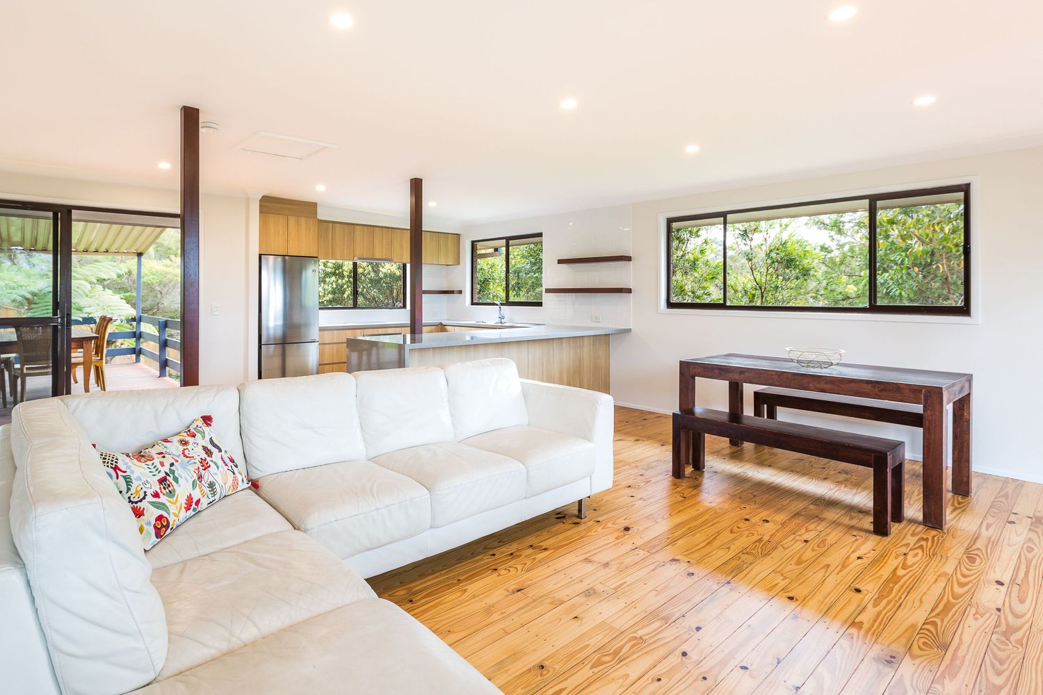 - Open plan living spilling out onto a front deck offering ocean glimpses
