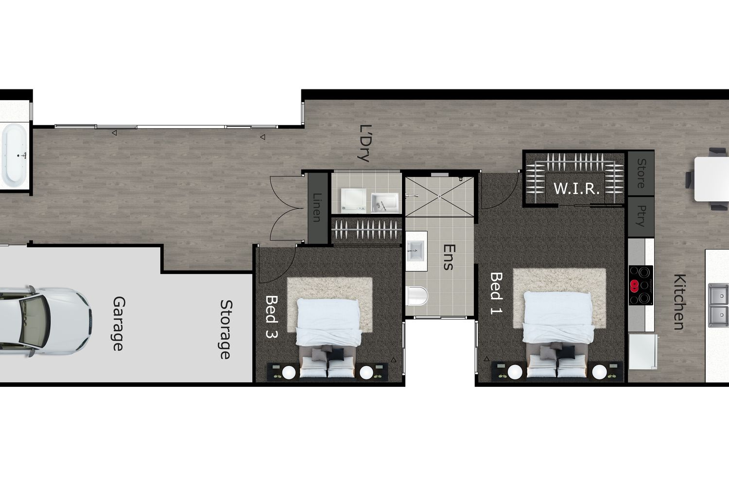 - Stone benchtops throughout